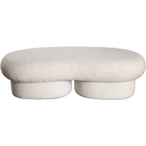 • Wave Curved Accent Bench in Ivory Boucle Fabric