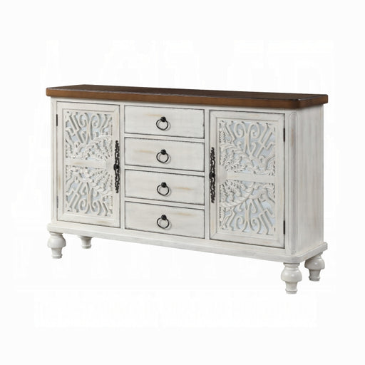 ACME WestThe elegant Vernon Console Table features an antique white finish with decorative cabinet door inlays. The rectangular wood console table features...