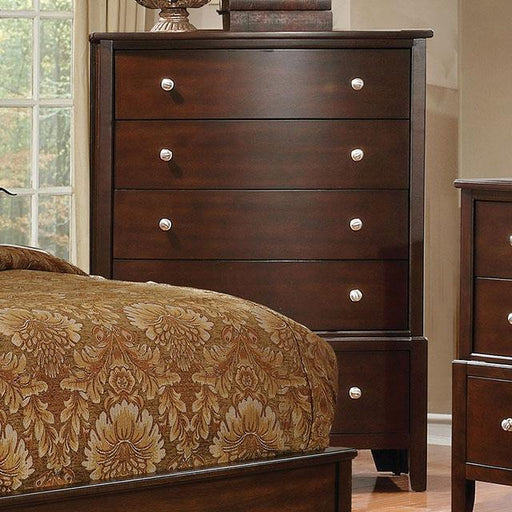 The perfect collection to declutter and organize while maintaining style. This brown cherry finished chest showcases unique geometric woodwork for ...