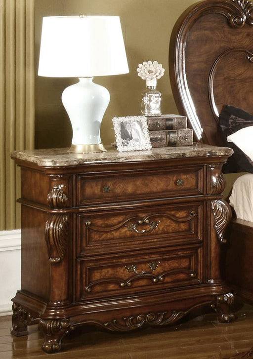 B9588 Collection by McFerran Home Furnishings Nightstand Oak Veneer and Wood Material 3 Drawers Traditional Design Carved Wood Top Quality & U...
