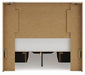 - Drawer interiors are lined with a faux linen laminate for a clean, finished look