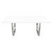 Mirage Rectangular Dining Table w/ White Lacquer Top and Polished Silver Metal Base by Diamond Sofa