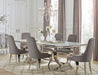 View full detailsThis modern dining table makes a bold statement with its sleek tempered glass top and sculptural stainless steel base. Designed for both elegance a...