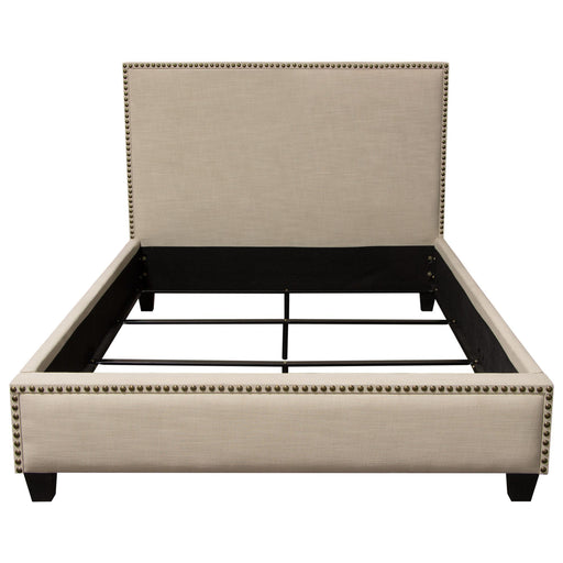 The epitome of fashion-forward design, this king upholstered panel bed is a beautiful blend of comfort and luxury. Shiny chrome-tone accents, a pea...