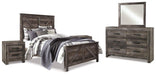 This cool bed and 2 nightstands are sure to win your heart with their daring designer take on modern rustic. The crisp, clean and minimalist-chic profile is enriched with a striking replicated oak grain with thick plank styling and a weathered gray finish for that much more authentic character.