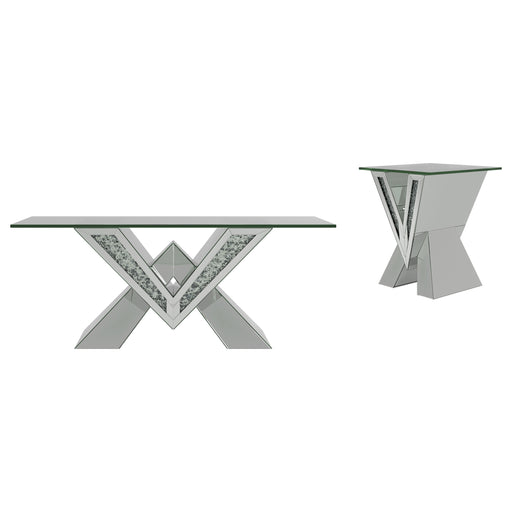 Coaster Z1 StandardThis mirrored coffee table set brings modern luxury to any living space. Featuring a coffee table and matching end table, both pieces boast bold V-...