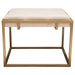 Babylon Small Accent Ottoman w/ Brushed Gold Frame & Padded Seat in Sand Linen by Diamond Sofa