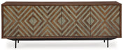 If you’re looking for a cool accent piece loaded with character, then you’ll want to carve out some space for this accent cabinet. Fabulous push magnet doors wow with their carved diamond design, while two interior shelves accommodate your storage needs. What a perfect way to mix an exotic element with your decor.
