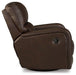 Embrace streamlined design. The sleek form of this swivel glider recliner is rich in tailored function. Its reclining, swivel and gentle rocking motions relax you in refined style. And the expertly matched leather and faux leather upholstery, in a deep neutral, levels up the recliner's affordable luxury.