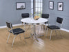 View full detailsAdd nostalgic flair to your dining space with this round retro dining table, featuring a crisp white top and chrome-rimmed edge. Supported by curva...