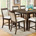 Entertain your guests with this eye-catching and sophisticated transitional dining table and padded leatherette chairs. The chairs are upholstered in silver, while the wooden frames are finished in gray. With itching borders on both chairs and table, the result is a fine dining set you can see in your home!