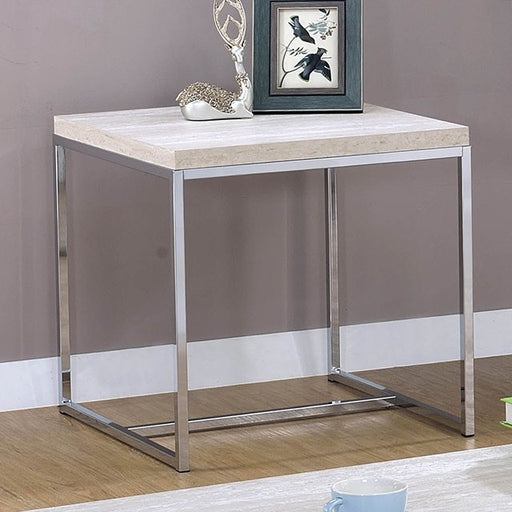 FOA WestPerfect for any cozy space, this end table features a gorgeous faux marble top. Sturdy steel construction guarantees a lifetime of use.