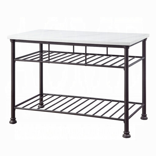 ACME WestRectangular Kitchen IslandStorage: 2 Drawers & 2 Tier ShelvesFull Extension Drawer GlideSide Metal GlideMarble Top Wooden Turned LegFeatures• K...
