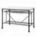 Give off a light and airy feel to a compact cooking space. The Mera Kitchen Island features a artificial stone top paired with a metal slatted shelves, creating a sleek, timeless silhouette that bring your kitchen an open feel. Bottle rack and wine glass storages keep your glassware and collection within reach. Use this stylish yet functional addition to complete your kitchen decor.