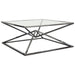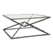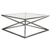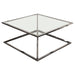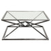 Aria Square Stainless Steel Cocktail Table w/ Polished Black Finish Base & Clear, Tempered Glass Top by Diamond Sofa