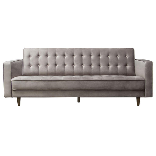 Sincere in its styling, this reclining sofa invites a relaxed sensibility into your space. Its neutral upholstery has a universal appeal, with pull...