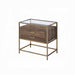 High contrast and layered look design instantly invigorates and refreshes your room decor. Metal frame with straight and angular lines borders the wooden storage section, adding some depth and appeal to the whole construction. Warm wood tone and clear glass top create a visual contrast, which makes this piece truly extraordinary and breathtaking . Under the glass top is an open compartment with two storage drawers that keep the things you need close at hand.