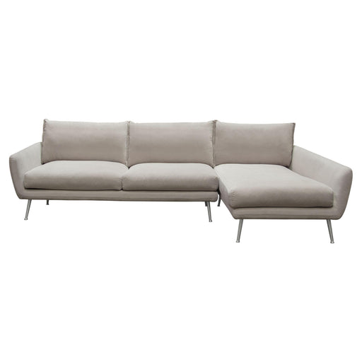Sit back and enjoy the velvety softness of this sectional. Its contemporary design is accentuated by a subtle chevron pattern that masters the art ...