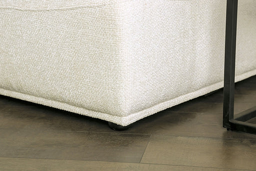 • Seattle Loose Back Loveseat in White Linen w/ Polished Silver Metal Leg
