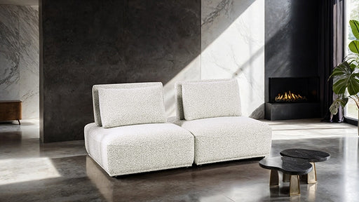 Give your guests a warm welcome with this deluxe living room ensemble. Soft fabric in a neutral tone wraps every inch of this piece, from the solid...