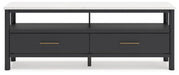 Imagine a TV stand that adds sophisticated and minimal boho style to your home with a stylish storage solution. This stand does just that. Its sleek design and replicated marble top create an upscale ambiance that's perfect for displaying your television and organizing your space.