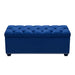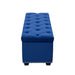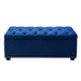 The Majestic Tufted Storage Trunk by Diamond Sofa offers a chic addition to your living space. This complimentary piece will allow your space to stay organized and stylish at the same time. Made with a sturdy hardwood construction, covered and tufted in a Royal Navy Velvet fabric with Nail Head Accents. Dual tension hinge on the lift-top. Use in any room for any purpose, a great way to provide additional seating or storage. - Tufted Lift-Top Storage Trunk - Finished in Royal Navy Velvet with Nail Head Accent Trim - Provides Space Conscious Seating or Storage, Interior Dimensions: 44"x14"x13" - Dual Tension Hinges for the Lid - Espresso Wood Foot