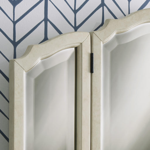 Ashley FurnitureElegant, timeless furnishings take your bedroom to the next level. Nothing does that better than this mirrored vanity with bench. The antiqued whit...