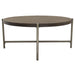 Atwood 40" Round Cocktail Table w/ Grey Oak Veneer Top & Brushed Silver Metal Base by Diamond Sofa