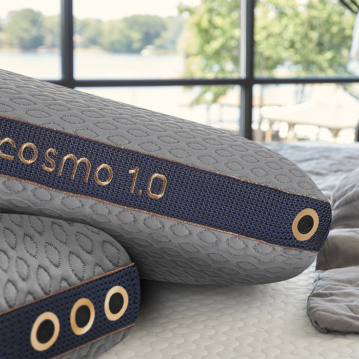 The sporty Cosmo pillow gives you the best of both worlds - soft on one side and firmer on the other. Adjust your comfort level each night simply by flipping over your pillow! The Ver-Tex® cover features instant cooling technology, that feels cool-to-the-touch, and Air-X® mesh panels, with air vents along the sides, reduce sweating and overheating.