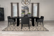 Introducing a beautiful dining room collection with clean, modern lines. The dining table boasts a oak veneer top with a black finish and a stunnin...