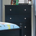 With its unique color selection and contemporary elements, this stylish chest brings with it everything your child needs in a bedroom. Providing spacious drawers for storage that are reinforced with a sturdy dovetail construction.