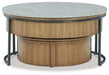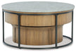 - Coffee table with faux cement melamine top; lift-top mechanism