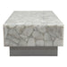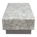 The Gemini Cocktail Table by Diamond Sofa is a stunning presentation of nature's beauty. Genuine White Quartz bedazzles with its rich variations and organic composition. Elevated atop an antique silver finished base, the Gemini Cocktail Table is sure to become the centerpiece of its surroundings. - Overall Table Dimensions: 48" x 24" x 14" - Genuine White Quartz Table Top - Antique Silver Finish on Base - Stylish Addition to any Room's D�cor - No Assembly Required