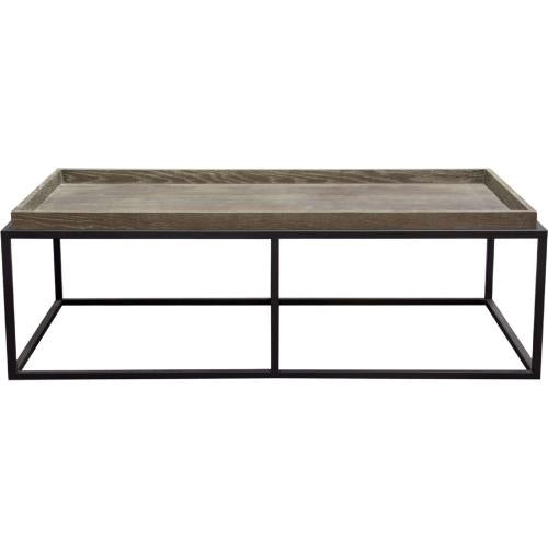 Lex Rectangle Cocktail Table in Rustic Oak Veneer Finish Top w/ Black Powder Coated Metal Base