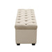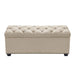The Majestic Tufted Storage Trunk by Diamond Sofa offers a chic addition to your living space. This complimentary piece will allow your space to stay organized and stylish at the same time. Made with a sturdy hardwood construction, covered and tufted in a Tan Velvet fabric with Nail Head Accents. Dual tension hinge on the lift-top. Use in any room for any purpose, a great way to provide additional seating or storage. - Tufted Lift-Top Storage Trunk - Finished in Tan Velvet with Nail Head Accent Trim - Provides Space Conscious Seating or Storage, Interior Dimensions: 44"x14"x13" - Dual Tension Hinges for the Lid - Espresso Wood Foot