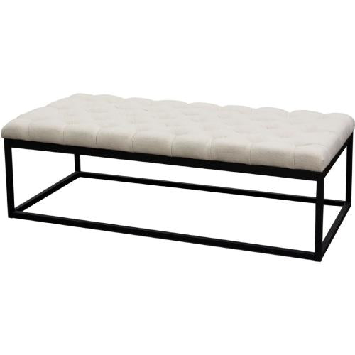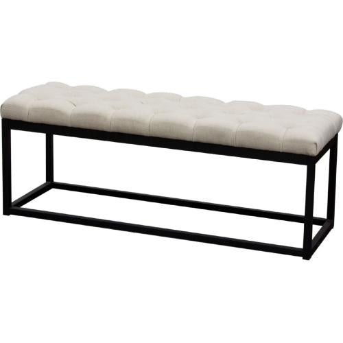 Mateo Black Powder Coat Metal Large Linen Tufted Bench - Desert Sand Linen