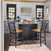 This homestyles 3-Piece Kitchen Island Set is constructed of solid hardwoods and engineered wood with a rich white finish and a distressed oak-finished top for an aged look. The island features a convenient drop leaf providing more dining and serving space, antique nickel hardware, an easy glide storage drawer, raised detail cabinet doors with adjustable shelves inside, and open storage on each end with an adjustable shelf. The 24"H bar stools feature white finish with a distressed oak-finished seat. Size: 36.5"H x 49.75"W x 26.5"D (36"D with drop leaf extended). Features: - Constructed of solid hardwoods and engineered wood with a rich white finish and a distressed oak-finished top - Convenient drop leaf provides more dining and serving space - Antique nickel hardware - Easy glide storage drawer