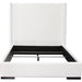 The Seattle Bed by Diamond Sofa is a hand crafted upholstered bed standing 69 inches tall. The 12 inch frame includes four slats with center supports added into the cleats for structural integrity. With its sleek, panel headboard, vintage wing accents and wood feet finished in a rich medium walnut finish providing the backdrop for the White Linen finish - creating this timeless addition to any bedroom's decor. Bed is available in Queen & Eastern King sizes. Foundation or Box Spring is required.