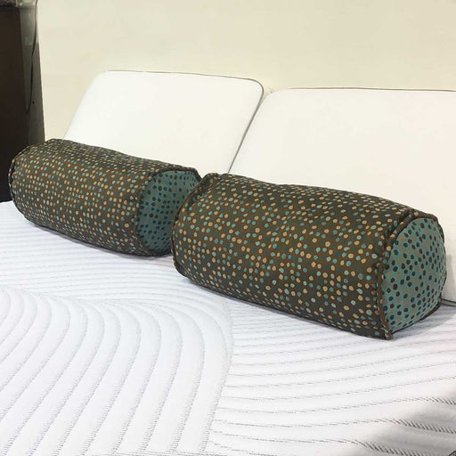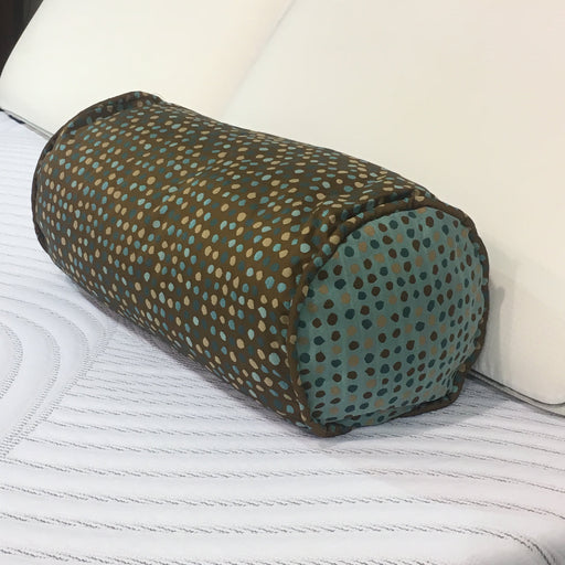 A contemporary pattern with a solid camel-tan shantung fabric as the comforter, accented with stripes and polka dot accessories in deep brown and turquoise. Southern Textiles is a fabric product manufacturer with Leggett & Platt.