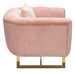 The Venus Collection by Diamond Sofa is a generously proportioned that will uniquely frame your living space, allowing for new d�cor possibilities. With its plush Blush Pink Velvet fabric and polished gold metal base, the Venus Collection will bring a timeless style into your home with its luxurious and inviting presentation. Venus Collection includes Sofa & Chair. - Blush Pink Velvet Fabric - Attached Seat & Back w/ Vertical Channel Tuft Design - Metal Base in Gold Finish - Contrasting Accent Pillows - Hardwood Frame with Lifetime Warranty
